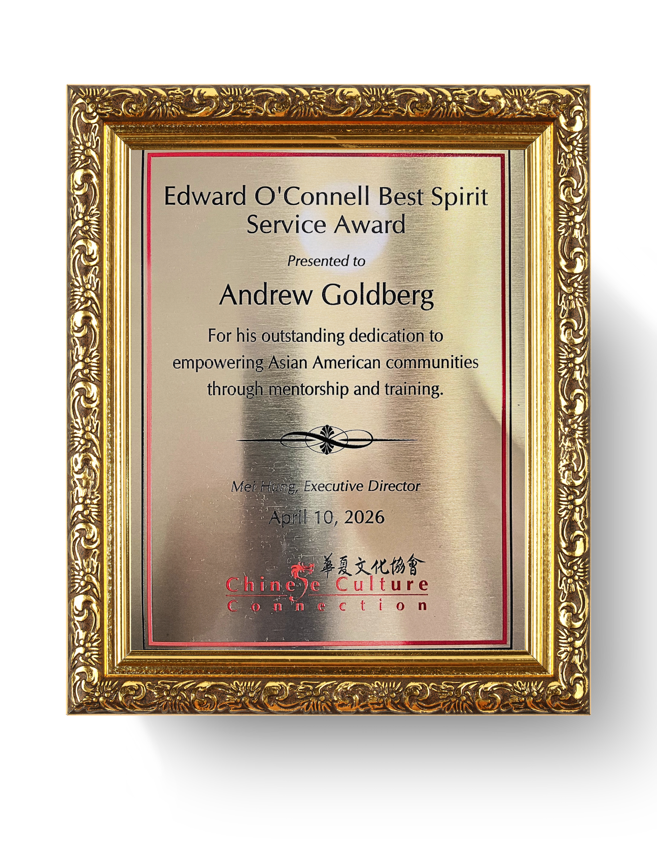 ElevAsian Founder/CEO Andy Goldberg received the Edward F. O’Connell Inspirational Service Award from the Chinese Culture Connection.